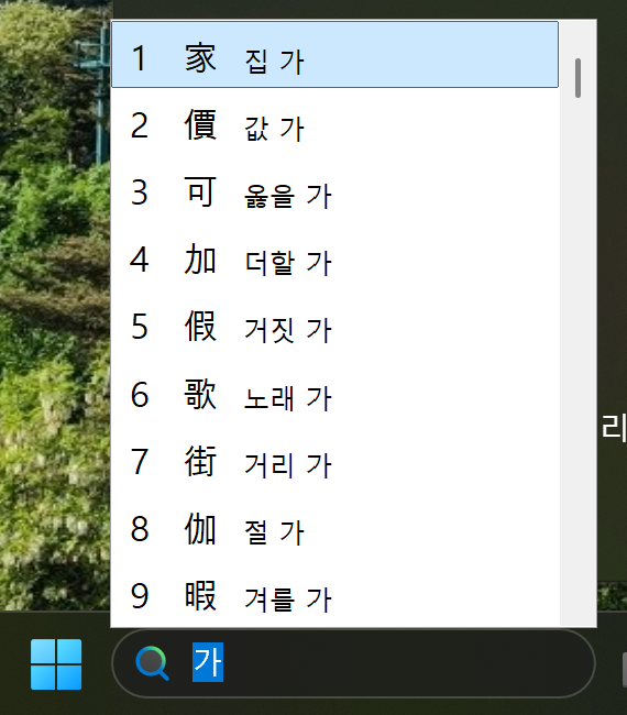 물론 가 말고 다른 거 아무거나 쳐도 된다! ㄱ, ㅎ 등 초성이나 쀏 이렇게 한자 없는 거만 안 치시면 돼요...