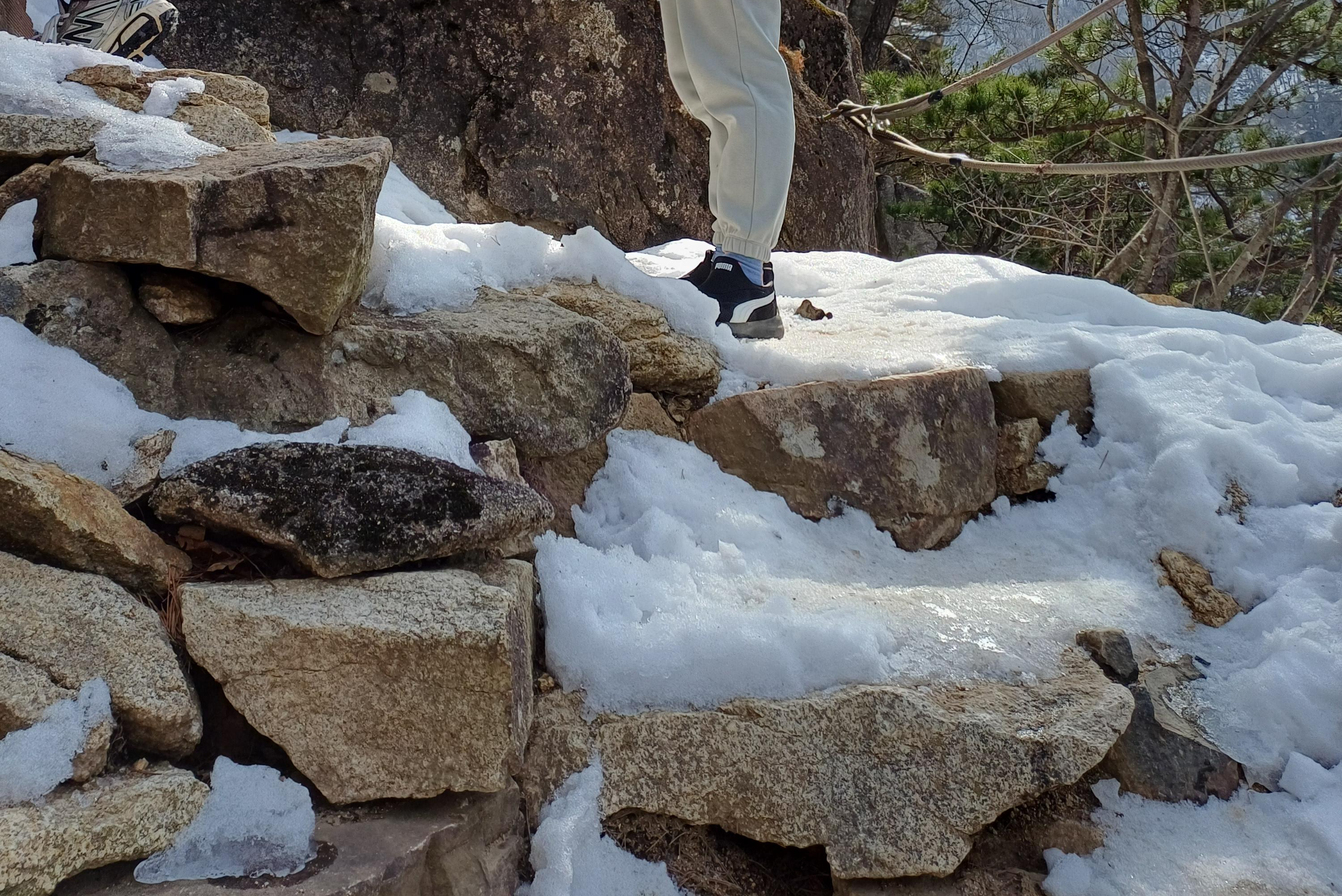 반계단을 계단 설계 시점부터 설치했는지 나중에 등산객에게 계단 사이 간격이 너무 높다고 욕먹고 급하게 설치했는지는 모르겠지만
